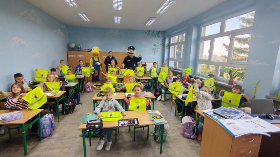 Dnia 2.10.2025 r. odbył się akcja "Bezpieczna droga do szkoły" z PSB Mrówka Krzywiń, która ufundowała dla dzieci pierwszych klas odblaskowe woreczki na obuwie.