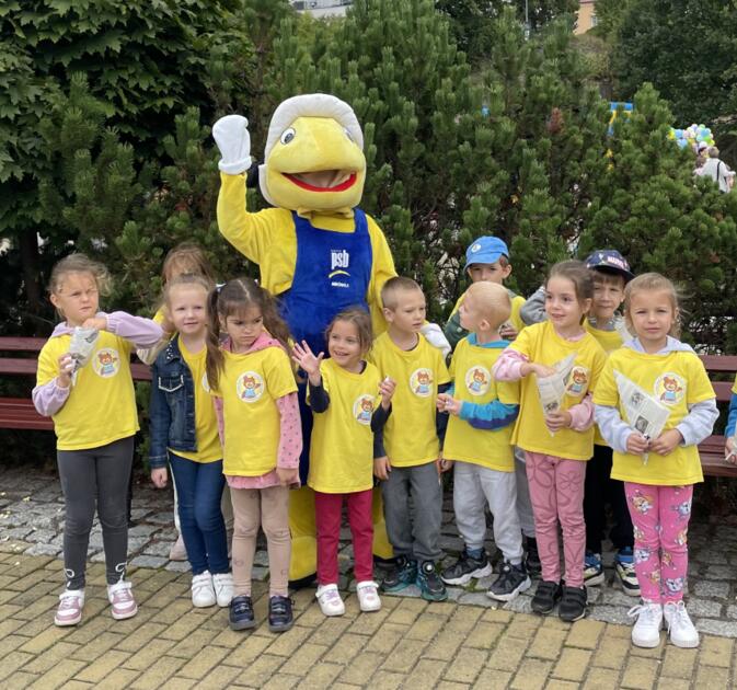Nie zabrakło również wyjątkowego gościa – Mrówki, która wspólnie z funkcjonariuszami policji przeprowadziła akcję edukacyjną „Bezpieczna droga z Mrówką”, ucząc dzieci zasad bezpiecznego poruszania się po drogach. Dodatkową atrakcją było zwiedzanie wozu strażackiego, które wzbudziło ogromne zainteresowanie wśród najmłodszych.