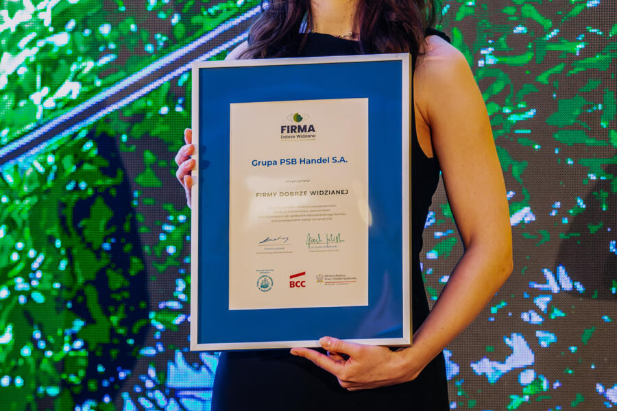 Grupa PSB Handel S.A. została uhonorowana tytułem „Firma Dobrze Widziana” w XVI edycji prestiżowego konkursu organizowanego przez Business Centre Club. Wyróżnienie to przyznawane jest firmom prowadzącym działalność w sposób odpowiedzialny społecznie oraz promującym najwyższe standardy CSR i ESG. Uroczysta gala finałowa odbyła się 27 listopada 2025 roku w Warsaw Presidential Hotel w Warszawie.