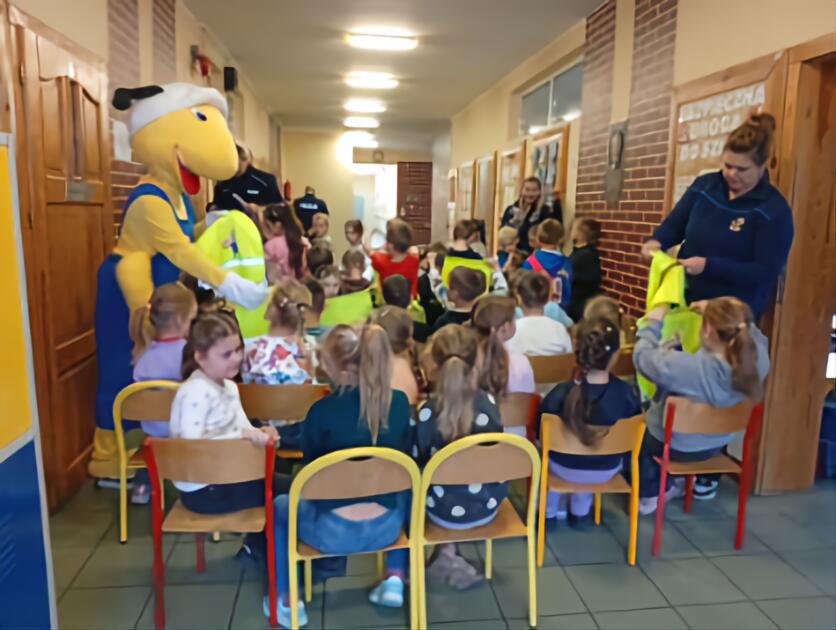 Podczas zajęć przypomniano dzieciom najważniejsze zasady bezpiecznego poruszania się po drodze. Funkcjonariusze rozmawiali z najmłodszymi m.in. o tym, jak prawidłowo przechodzić przez jezdnię, dlaczego warto nosić elementy odblaskowe oraz jak właściwie korzystać z przejść dla pieszych.