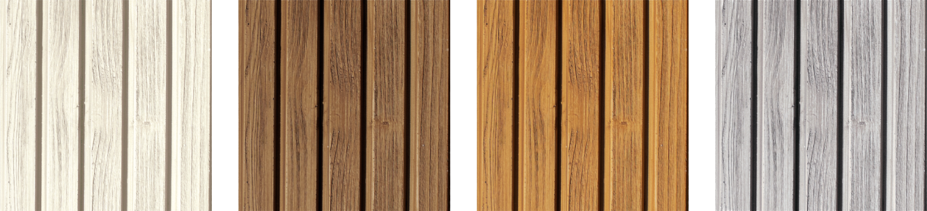 Oferta 5 wzorów słoi i sęków odwzorowanych z prawdziwej deski drewnianej, oraz 20 kolorów bejc pozwolą na dobranie idealnego rozwiązania na potrzeby elewacji.