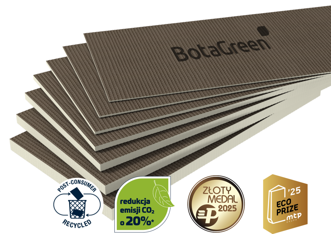 🔹 BotaGreen®– innowacyjna płyta budowlana wyprodukowana z recyklingowanego XPS, stworzona z myślą o budownictwie zrównoważonym i ochronie środowiska. Charakteryzuje się najwyższą wytrzymałością 0,4 N/mm²