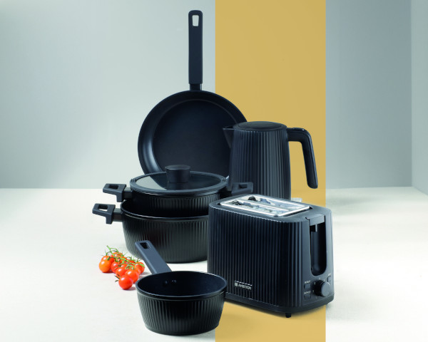 W kolekcji LINEAR znajdziesz szeroki wybór produktów – od garnków, rondli i patelni, po toster, frytkownicę i czajnik elektryczny, a także eleganckie noże, bloki na noże i kubki termiczne. Każdy element zaprojektowano w charakterystycznym dla serii stylu – nowoczesnym, matowym wykończeniu w głębokim odcieniu czerni, które nadaje wnętrzu wyrafinowany, a zarazem uniwersalny charakter.