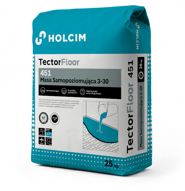 Produkt znajduje szerokie zastosowanie przy błyskawicznym wyrównywaniu poziomych podłoży wewnątrz budynków, w tym w pomieszczeniach o podwyższonej wilgotności. TectorFloor 451 doskonale sprawdza się na podłogach ogrzewanych oraz może być aplikowany zarówno ręcznie, jak i maszynowo w zakresie grubości od 3 do 30 mm. Stanowi idealny podkład pod różnego rodzaju wykończenia, takie jak płytki ceramiczne, wykładziny PCV i dywanowe, okładziny drewniane, a nawet posadzki żywiczne.