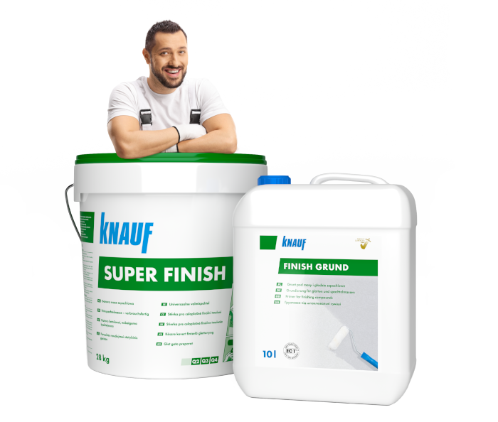 Knauf Super Finish to gotowa gładź szpachlowa, która po nałożeniu na ścianę tworzy twardą powierzchnię, odporną na uszkodzenia mechaniczne, perfekcyjnie gładką i idealną pod farby nawierzchniowe lub inne okładziny ścienne.