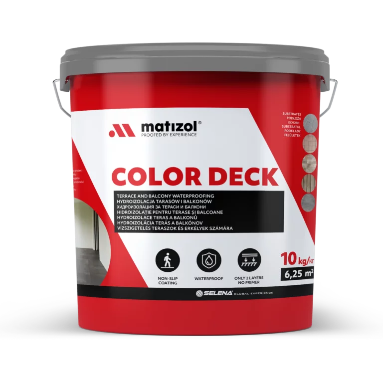 Matizol Color Deck to elastomerowa, płynna powłoka hydroizolacyjna, przeznaczona do zabezpieczania powierzchni zewnętrznych takich jak balkon czy taras.