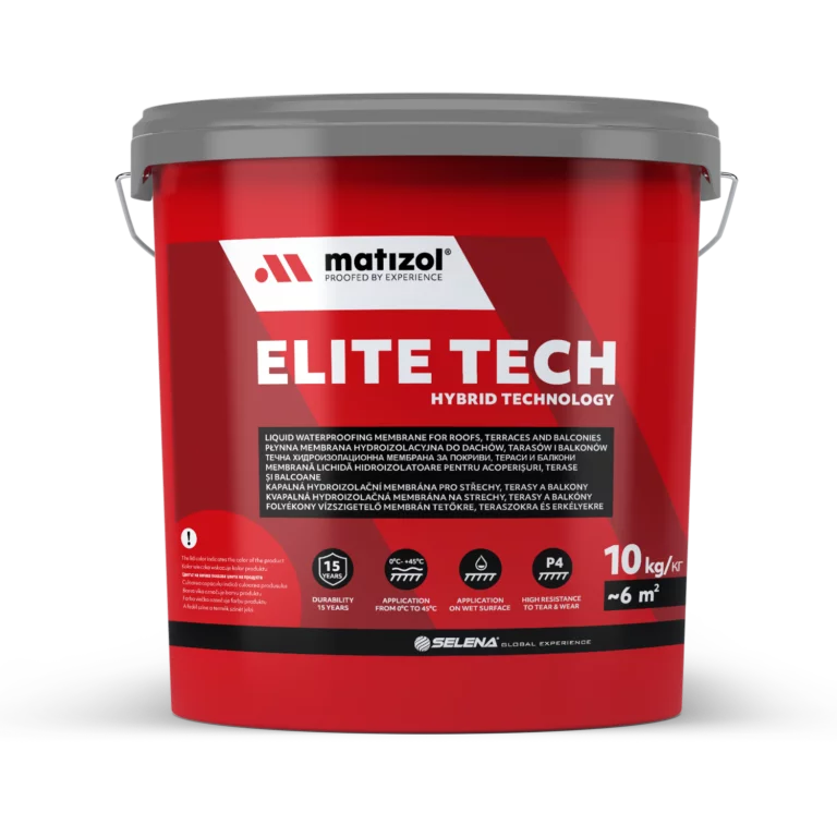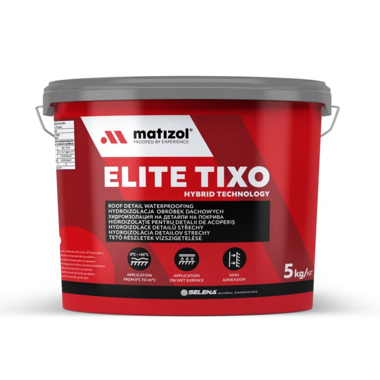 Tiksotropowa, hybrydowa, płynna membrana dachowa do powierzchni pionowych i do pracy z obróbkami detali. Nadaje się również do wyrównywania fug (do głębokości 1 mm) na podłożach wyłożonych płytkami ceramicznymi i gresem przed nałożeniem MATIZOL ELITE TECH.