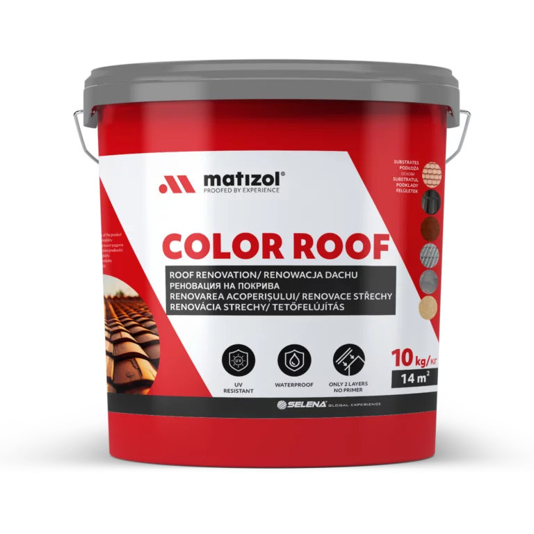 Matizol Color Roof to elastyczna, płynna powłoka hydroizolacyjna, idealna do renowacji różnych powierzchni dachowych, takich jak blacha, papa, beton czy gonty bitumiczne. Jest szczególnie polecana do dachów skośnych, gdzie tworzy nową warstwę ochronną oraz odświeża wygląd. Dzięki dostępnej gamie kolorów nadaje dachom nowe życie.
