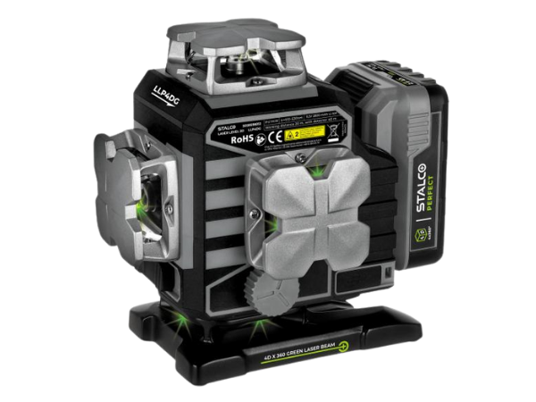 Laser 4D Stalco Perfect LLP4DG to najbardziej zaawansowany model w ofercie Stalco, zaprojektowany z myślą o profesjonalistach, którzy oczekują najwyższej precyzji i funkcjonalności. Wyposażony w zieloną wiązkę laserową oraz 16 linii laserowych, oferuje pełną kontrolę nad pracą dzięki dużemu wyświetlaczowi oraz innowacyjnym funkcjom sterowania. LLP4DG posiada silnik w stopie lasera, który umożliwia precyzyjną regulację pozycji lasera za pomocą przycisków na obudowie, pilota lub aplikacji mobilnej. Dzięki solidnej konstrukcji, rozbudowanemu zestawowi akcesoriów oraz długiemu czasowi pracy na jednym ładowaniu, model LLP4DG jest idealnym narzędziem do najbardziej wymagających zadań pomiarowych.