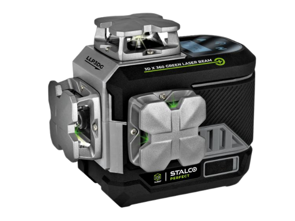 Laser 3D Stalco Perfect LLP3DG to zaawansowany model z zieloną wiązką, który łączy solidną konstrukcję i nowoczesne funkcje z najwyższą precyzją działania. Dzięki zastosowaniu materiałów takich jak kompozyt, aluminium oraz tworzywo TPR, laser cechuje się wyjątkową wytrzymałością i odpornością na trudne warunki pracy. Wygodny wyświetlacz informuje o poziomie naładowania akumulatora, trybie pracy oraz kącie nachylenia urządzenia, co znacząco zwiększa komfort użytkowania.