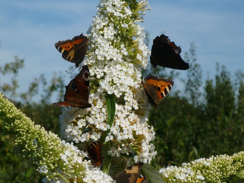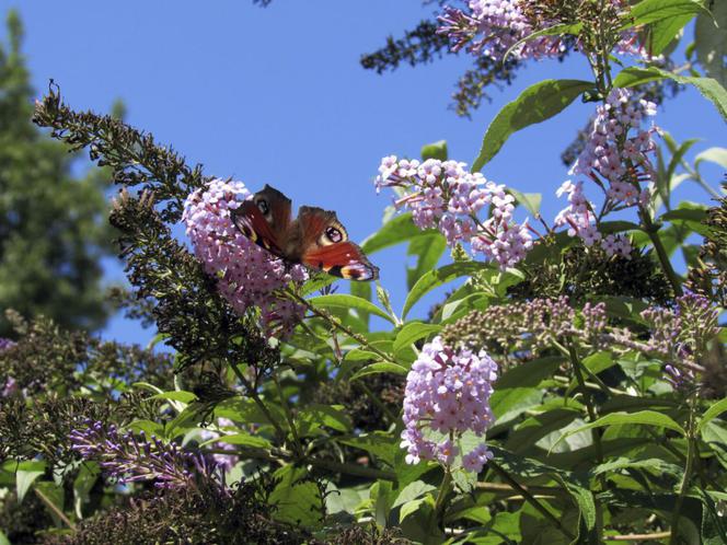 Budleja Dawida (Buddleja davidii) przydomek motyli krzew zawdzięcza temu – jak łatwo się domyślić – że przyciąga bardzo słodkim i intensywnym zapachem motyle, które zbierają nektar. Krzew ten pochodzi z Chin i Japonii, jednak świetnie sprawdzi się w naszym klimacie. Budleja Dawida doskonale prezentuje się zarówno jako soliter, jak i w grupie. Co ważne, jest odporna na zanieczyszczenia powietrza, poradzi sobie więc bez problemu w środowisku miejskim.
