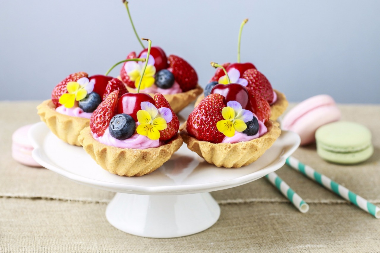 Ciepłe dni nie sprzyjają pieczeniu ciężkich ciast i nagrzewaniu kuchni piekarnikiem. Z kolei wielość owoców jagodowych (truskawek, poziomek, borówek) zachęca do przygotowywania słodkich deserów. Proponujemy zatem coś pysznego i łatwego w przygotowaniu – babeczki z owocami. Do dekoracji babeczek koniecznie użyjmy kwiatów bratka. Bratek (inaczej fiołek trójbarwny) jest kolejnym z kwiatów jadalnych, który z powodzeniem możemy uprawiać w ogrodzie, a także w skrzynkach i doniczkach balkonowych. Jego kwiaty mają słodko-cierpki smak. Doskonale więc wkomponują się w słodki smak naszego deseru, a przy tym babeczki będą wyglądać ekskluzywnie.