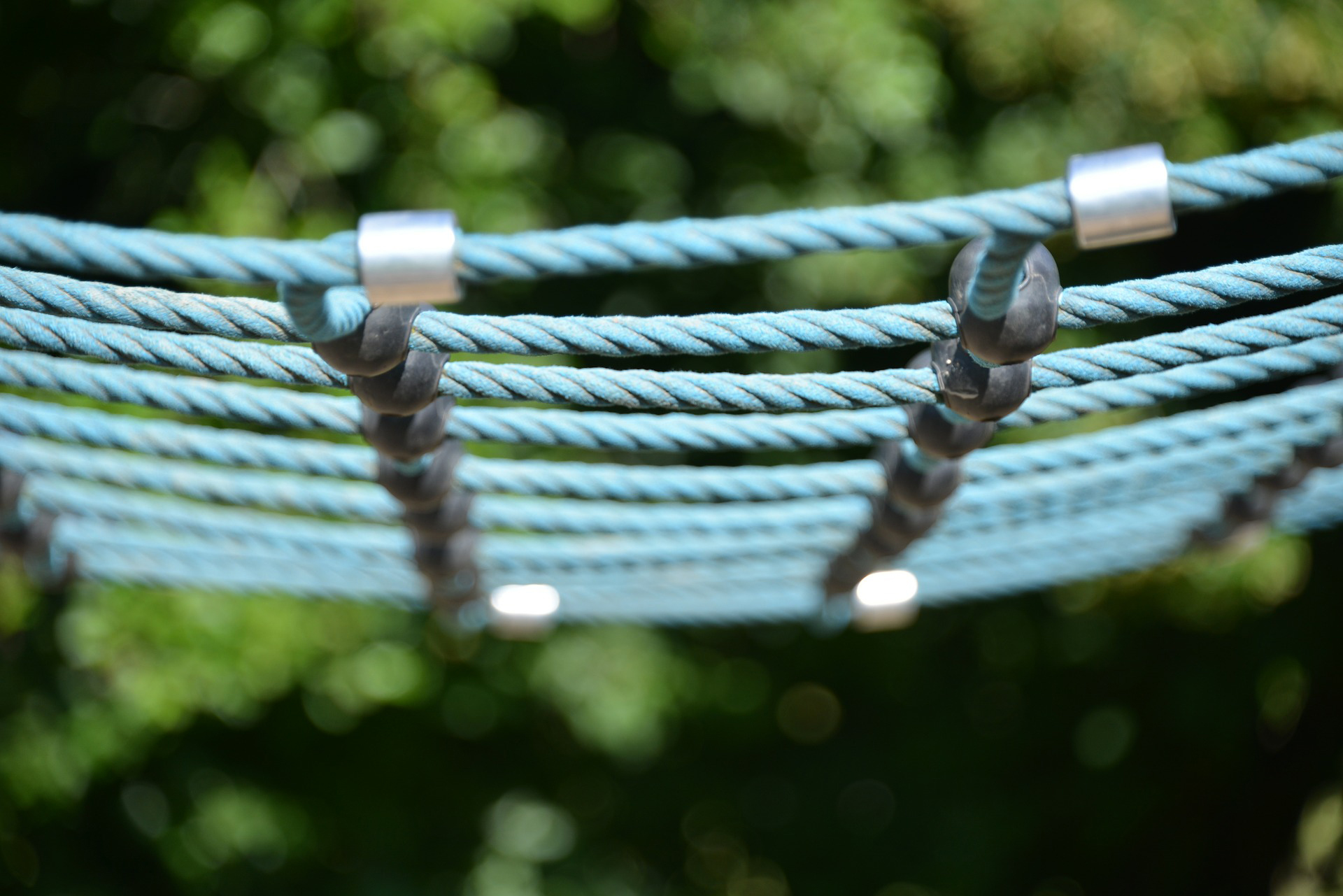 Wszelkie sznurkowe drabinki, nośne elementy huśtawek, plecionki np. w huśtawkach dziecięcych typu bocianie gniazdo, musimy dokładnie ocenić. Jeśli zauważymy miejsca przetarcia lub wynizywania się pojedynczych nitek w biegu liny, powinniśmy koniecznie ją wymienić. Producenci oferują bardzo wiele rodzajów wysokiej jakości lin i sznurów do użytku zewnętrznego o większej lub mniejszej elastyczności. Jeśli lina mocująca huśtawkę jest uszkodzona, najlepiej wziąć jej fragment i pokazać na stoisku ze sznurami i linami, z pewnością otrzymamy fachową poradę, jaki produkt najlepiej zakupić.