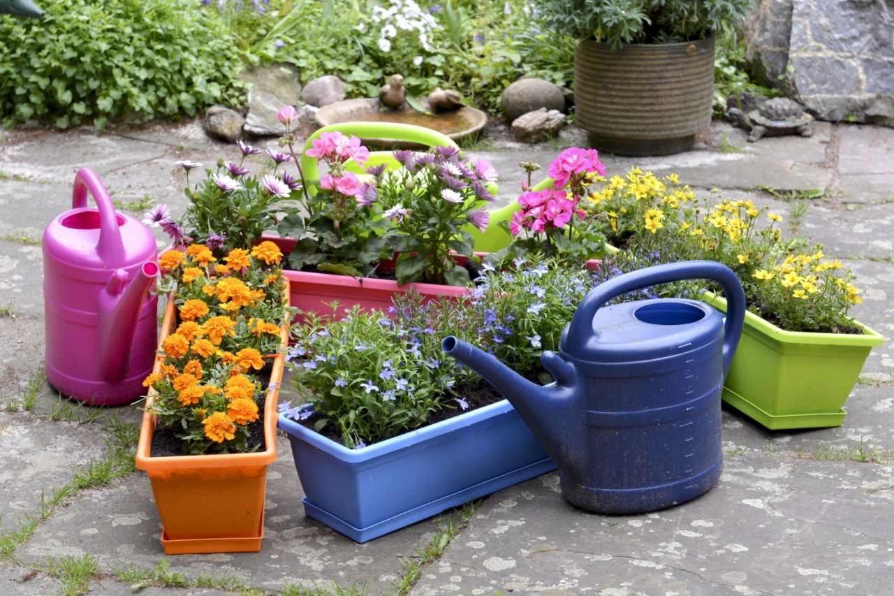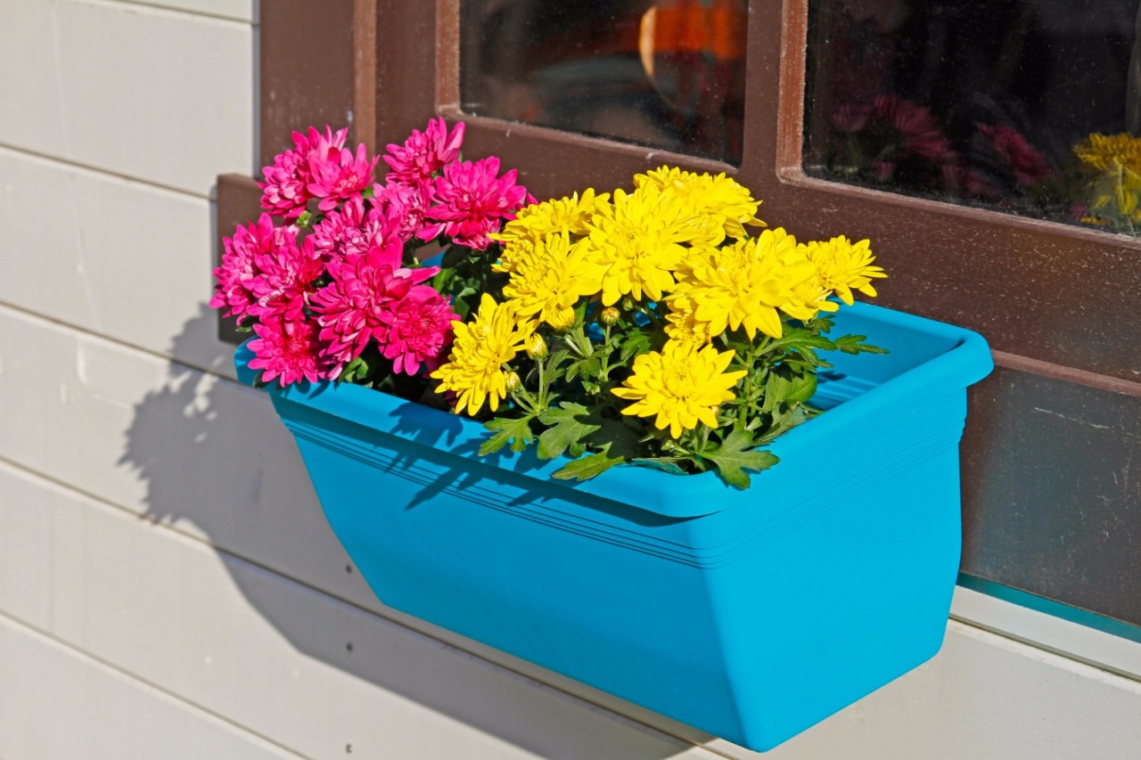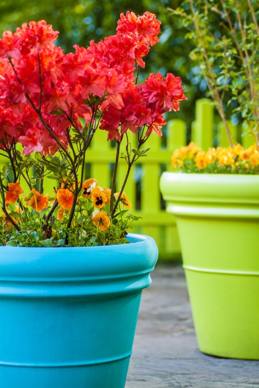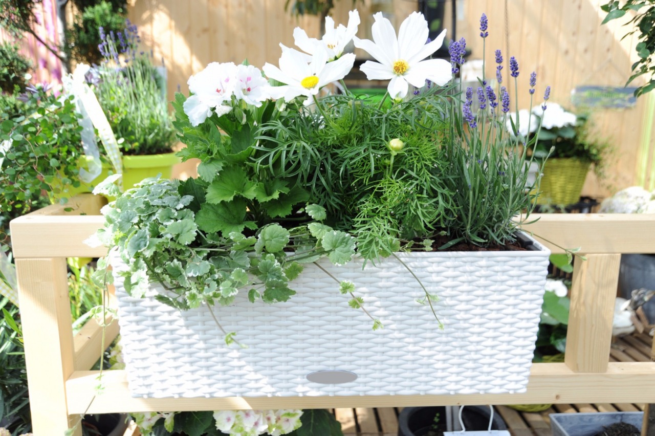 Doniczki i osłonki możemy komponować kolorystycznie w podobnej gamie albo zaproponować dekoracje kontrastujące, w mocnych żywych kolorach. W palecie pojemników z tworzywa znajdziemy zarówno te niewielkie, przeznaczone na małe rośliny, jak i donice o dużych pojemnościach, dlatego możemy w łatwy sposób stworzyć konsekwentne, w jednolitym charakterze pojemników dekoracje kwiatowe.