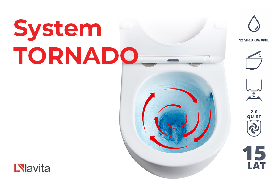 System spłukiwania Tornado rozwiąże codzienne problemy z hałasem, higieną i oszczędzaniem wody w Twojej łazience.