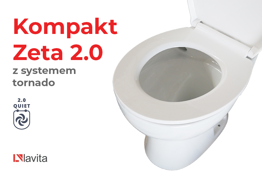 Kompakt Zeta 2.0 z systemem Tornado Domino - elegancki i funkcjonalny, łączy nowoczesny wygląd z wysoką skutecznością spłukiwania i oszczędnością wody.