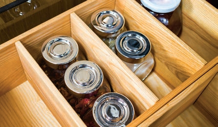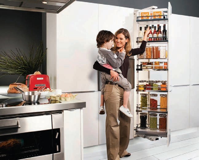 Osobna spiżarnia to praktyczna przestrzeń, w której możemy magazynować produkty żywnościowe, przetwory, większe opakowania zbiorcze napojów, warzywa itp. Wydzielone pomieszczenie na zapasy spożywcze jest szczególnie przydatne wtedy, gdy robimy przetwory, a na zakupy wybieramy się raz na jakiś czas. Co jednak zrobić, gdy w domu lub mieszkaniu nie mamy na taki luksus miejsca? Dobrym pomysłem jest wyposażenie kuchennych szafek w nowatorskie rozwiązania w postaci nowoczesnych mechanizmów wysuwania półek, szuflad oraz koszy.