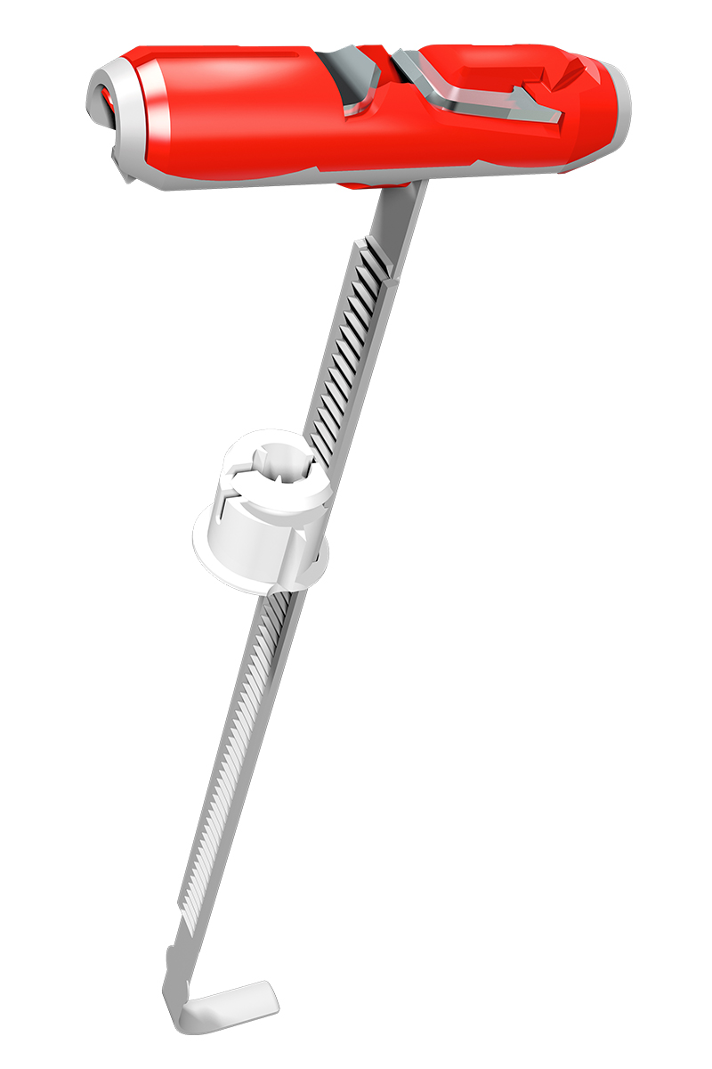 Kołek posiada średnicę 10 mm, dlatego do montażu wystarczą standardowe wiertła. Dwie małe płytki ze stali nierdzewnej w czerwonej części elementu uchylnego służą jako uniwersalne gniazdo na element złączny. Pozwala to na zastosowanie wkrętów o różnych średnicach (w tym wkrętów do drewna czy płyt wiórowych), śrub lub prętów z gwintem metrycznym i nakrętką.