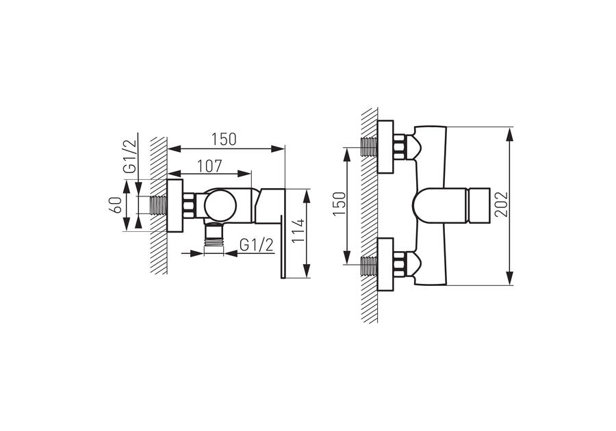 Regulator ceramiczny montaż naścienny przyłącze mimośrodowe G1/2 rozstaw 150 ± 20 mm podłączenie natrysku G1/2 bez zestawu natryskowego wykończenie: czarny