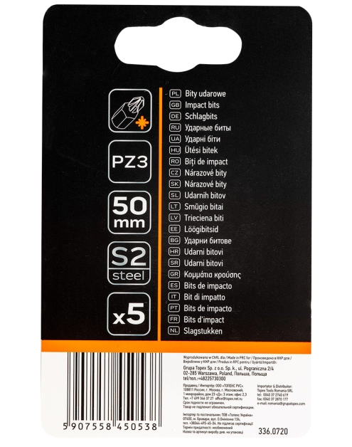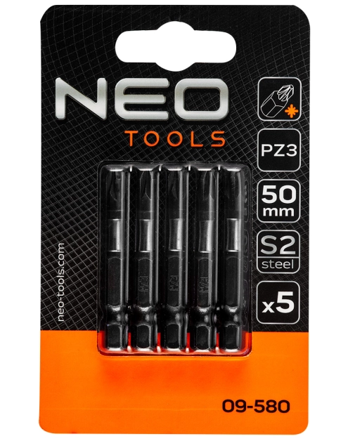 Bity udarowe S2 50 mm PZ3 5szt. Neo GTX Poland to narzędzia stworzone dla tych, którzy oczekują niezawodności i precyzji w każdej pracy. Jeśli często pracujesz z większymi wkrętami i mocowaniami, ten zestaw będzie idealnym wyborem. Wykonane z wysokiej jakości stali S2 bity charakteryzują się niezwykłą trwałością, odpornością na ścieranie i perfekcyjnym dopasowaniem do wkrętów PZ3, co minimalizuje ryzyko wyślizgiwania się z gniazda.
