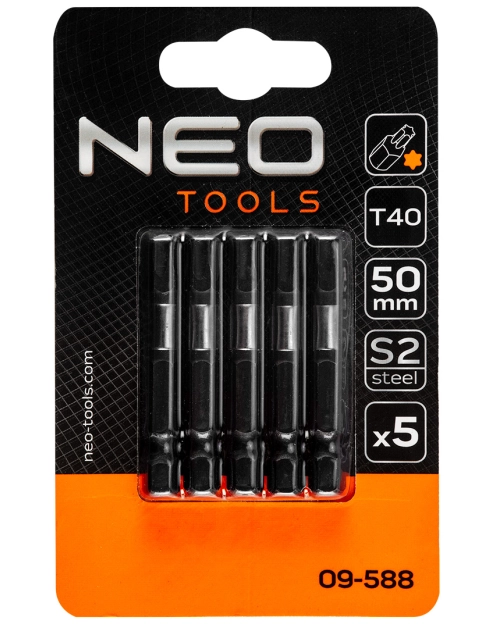 Bity udarowe S2 50 mm T40 5szt. Neo GTX Poland to akcesoria, które wyróżniają się nie tylko solidnością, ale także niesamowitą trwałością, co czyni je idealnym wyborem do najbardziej wymagających prac z użyciem wkrętarek udarowych. Wykonane z wysokogatunkowej stali S2 bity oferują wyjątkową odporność na zużycie oraz wysoką twardość, dzięki czemu doskonale radzą sobie z intensywnym użytkowaniem. Stal S2 jest ceniona za swoją wytrzymałość na pęknięcia i zniekształcenia, nawet podczas pracy w trudnych warunkach, co zapewnia pewność, że bity posłużą przez długi czas.