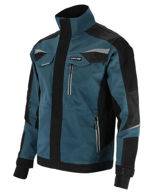 MATERIAŁ: 65% poliester, 35% bawełna, 270g/m2/ 90% nylon, 10% elastan, 240g/m2. Wytrzymała tkanina typu CANVAS. Materiał stretch „4-way elastic” (rozciągliwość w 4 kierunkach) zapewnia wysoką elastyczność i wygodę podczas użytkowania. 5 kieszeni, w tym 3 zamykane na suwak. Wstawki odblaskowe zwiększające bezpieczeństwo podczas pracy. Podwójne szwy. Wysokiej jakości zamek błyskawiczny YKK, kryty plisą zamykaną na napy. Otwory wentylacyjne z siatką pod pachami zwiększające cyrkulację powietrza. Wzmocnione rękawy, karczek i kieszenie materiałem Cordura (420D nylon) o wysokiej odporności na przetarcia. Rękawy regulowane za pomocą rzepów. Mankiety zakończone wewnętrznym elastycznym ściągaczem z otworem na kciuk, zapewniają ochronę przed wiatrem. Dół bluzy z regulacją na napy. Modny i ciekawy design. Krój „slim fit”. Wszywka identyfikacyjna.