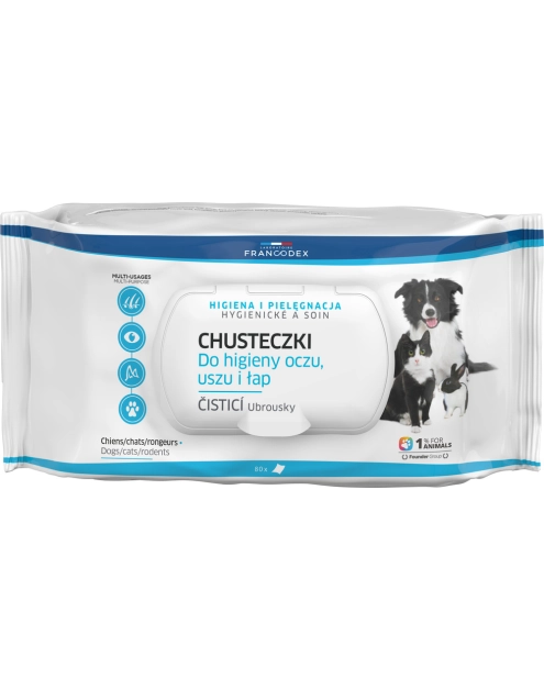 Chusteczki do czyszczenia oczu, uszu, łap dla zwierząt 80 sztuk FRANCODEX