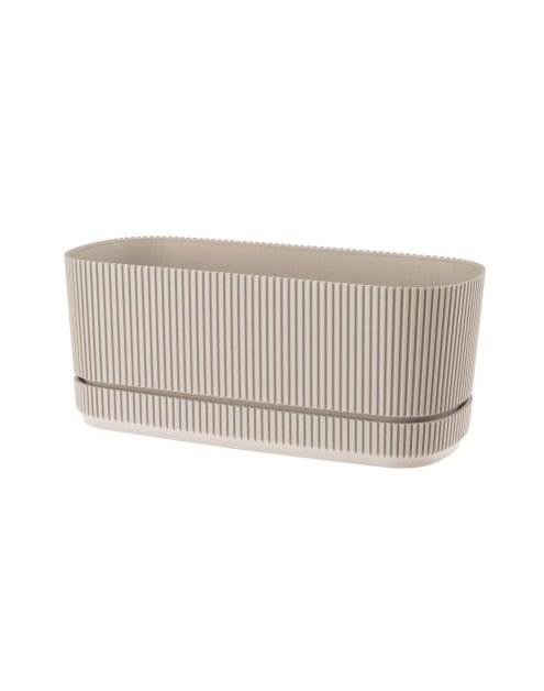 Doniczka Pera owalna o wymiarach 29x13 cm marki VERDENIA w kolorze beżowym to świetny zestaw stworzony razem z dedykowaną podstawką. Doniczka została wykonana z wysokiej jakości tworzywa sztucznego w beżowym kolorze o stylowym, matowym wykończeniu. Jej stonowany kolor połączony z tłoczoną strukturą tworzą duet idealny dla nowoczesnych wnętrz. Owalny kształt doniczki pozwala na ciekawą ekspozycję roślin w jednej linii - będzie się pięknie prezentować na parapecie. Podstawka doniczki PERA posiada wypustki, dzięki którym elementy mocno trzymają się ze sobą. Ten funkcjonalny i stylowy dodatek pomoże Ci cieszyć się zielonym zakątkiem na zewnątrz, jednocześnie nadając mu estetyczny i nowoczesny wygląd.
