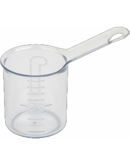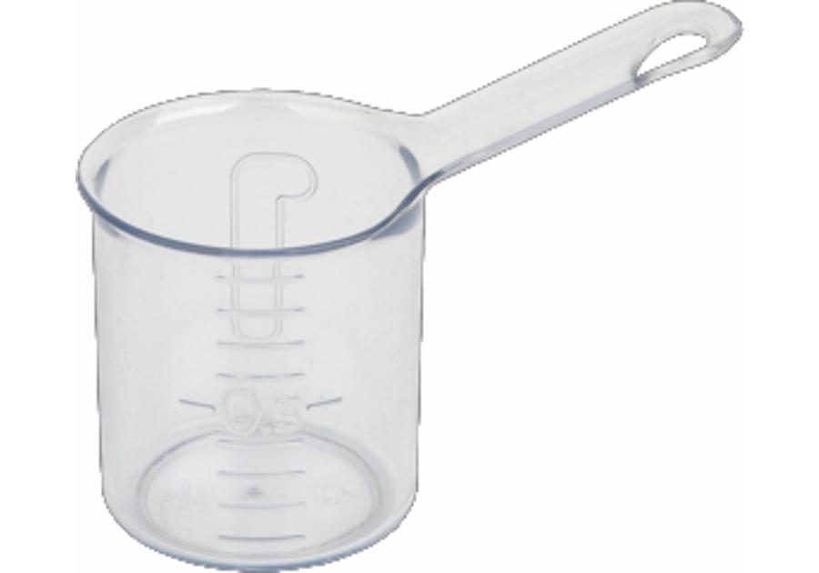 Naczynie pomiarowe z rączką to kubek o pojemności 100 ml, który wyposażony w wygodny uchwyt służy do odmierzania produktów.