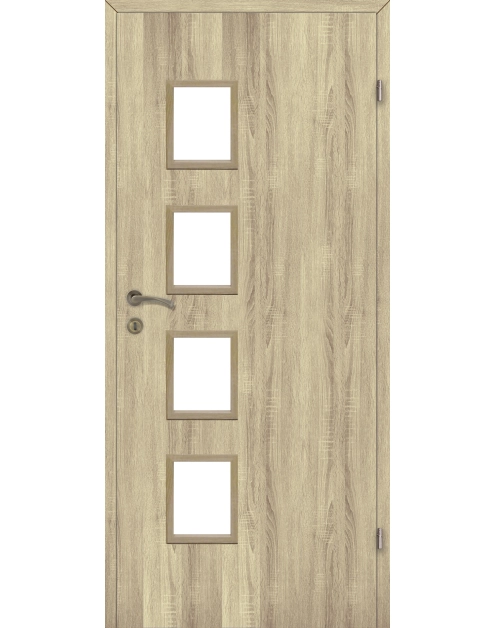Drzwi lewe dąb bielony Alba Voster to wykonane z wysokiej jakości lakierowanej płyty drzwi wewnętrzne o szerokości 80 cm w kolorze bielonego dębu.