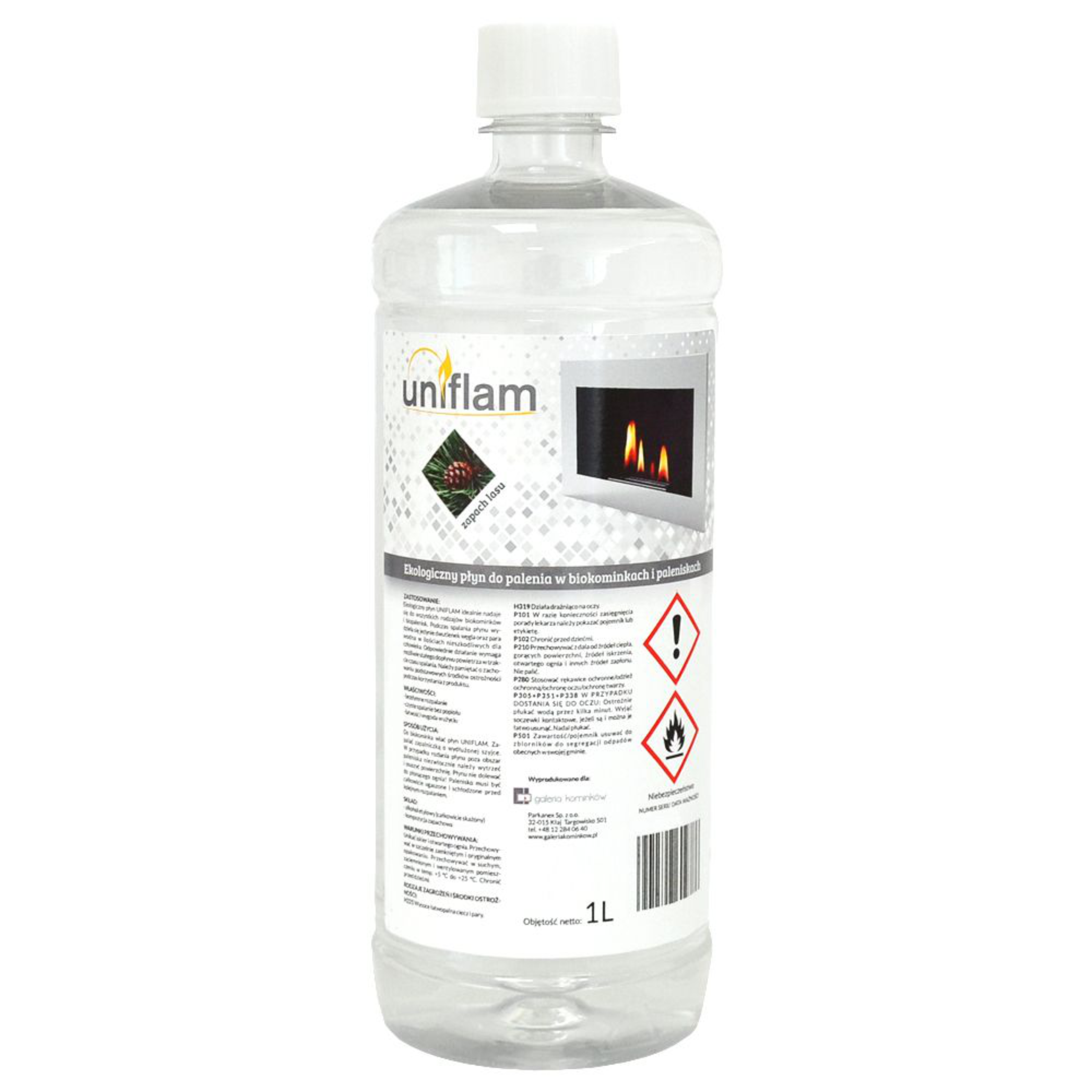 Ekologiczne biopaliwo UNIFLAM o zapachu lasu i konsystencji płynu przeznaczone do spalania we wszystkich rodzajach biokominków i biopalenisk.