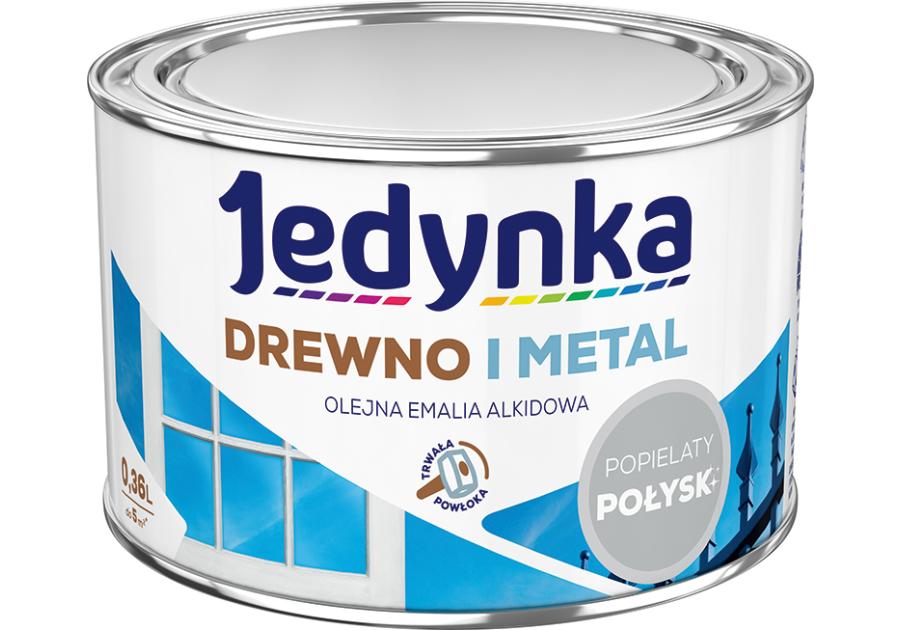 Emalia olejno-alkidowa drewno i metal popielaty 0,36l połysk Jedynka to niskoaromatyczna, olejna emalia alkidowa przeznaczona do ogólnego stosowania. Tworzy gładkie, matowe powłoki o wysokich walorach dekoracyjnych, które są odporne na wgniecenia, uderzenia oraz działanie czynników atmosferycznych. Charakteryzuje się bardzo dobrą przyczepnością do podłoża i nie zawiera szkodliwych związków chromu i ołowiu. Oferuje trwałe kolory i wysoką siłę krycia, a jej wydajność wynosi około 14 m²/l przy jednokrotnym malowaniu. Można ją aplikować pędzlem, wałkiem lub natryskiem.