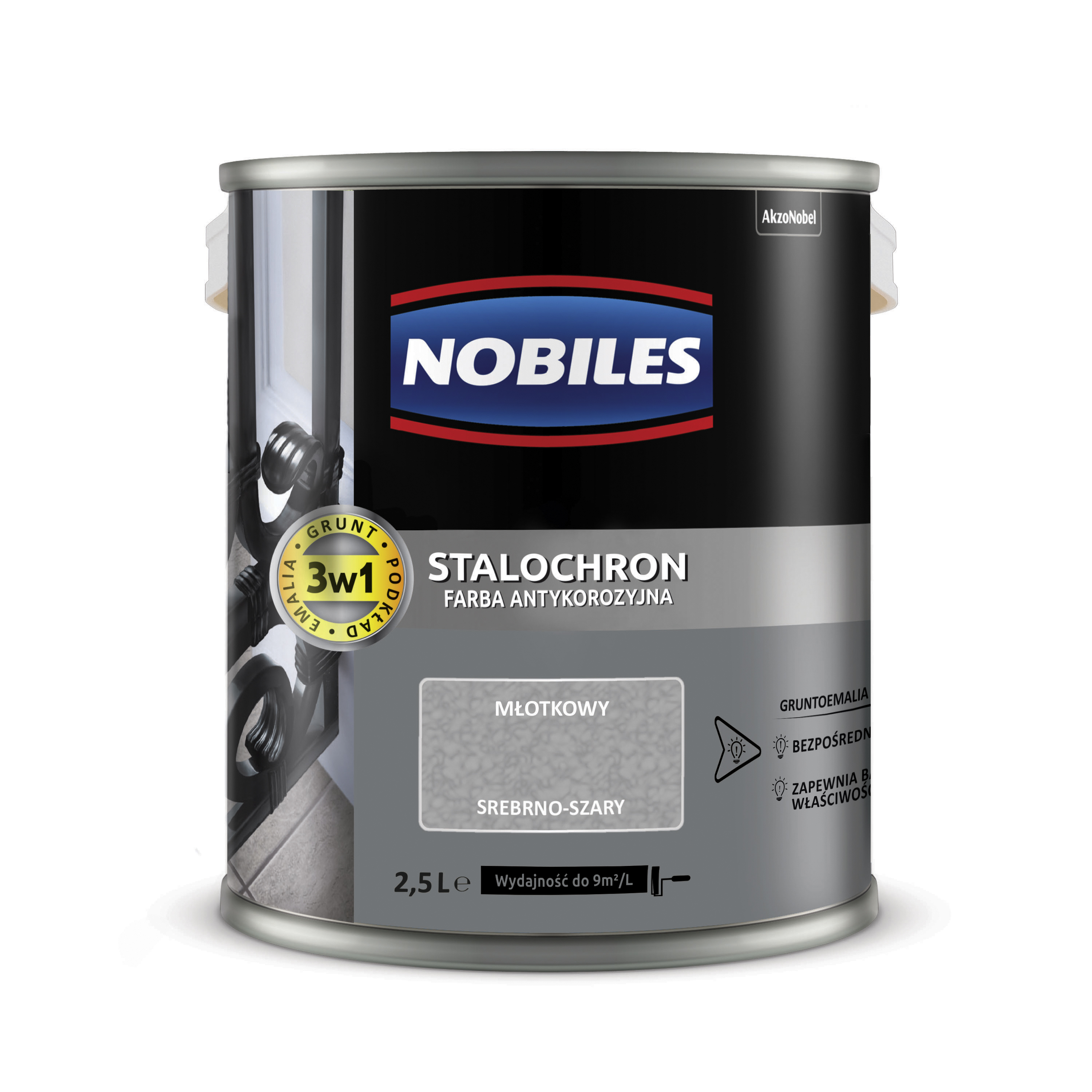 Nobiles Stalochron to farba antykorozyjna, przeznaczona do ochronno-dekoracyjnego malowania powierzchni stalowych i żeliwnych, wewnątrz i na zewnątrz pomieszczeń. Tworzy wysokiej jakości elastyczne powłoki odporne na działanie wszystkich czynników atmosferycznych, gwarantujące długoletnie i profesjonalne zabezpieczenie malowanej powierzchni. Nie wymaga stosowania farb podkładowych i może być nakładana bezpośrednio na nowe powierzchnie metalowe, jak również na miejsca pokryte rdzą.