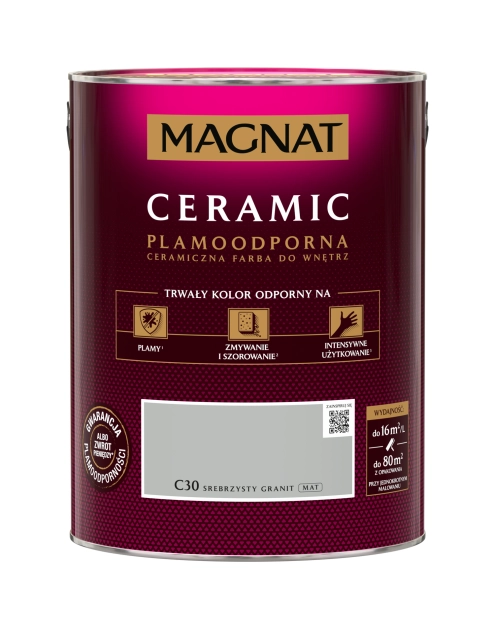 Farba lateksowa w kolorze srebrzystego granitu ma następujące parametry techniczne: