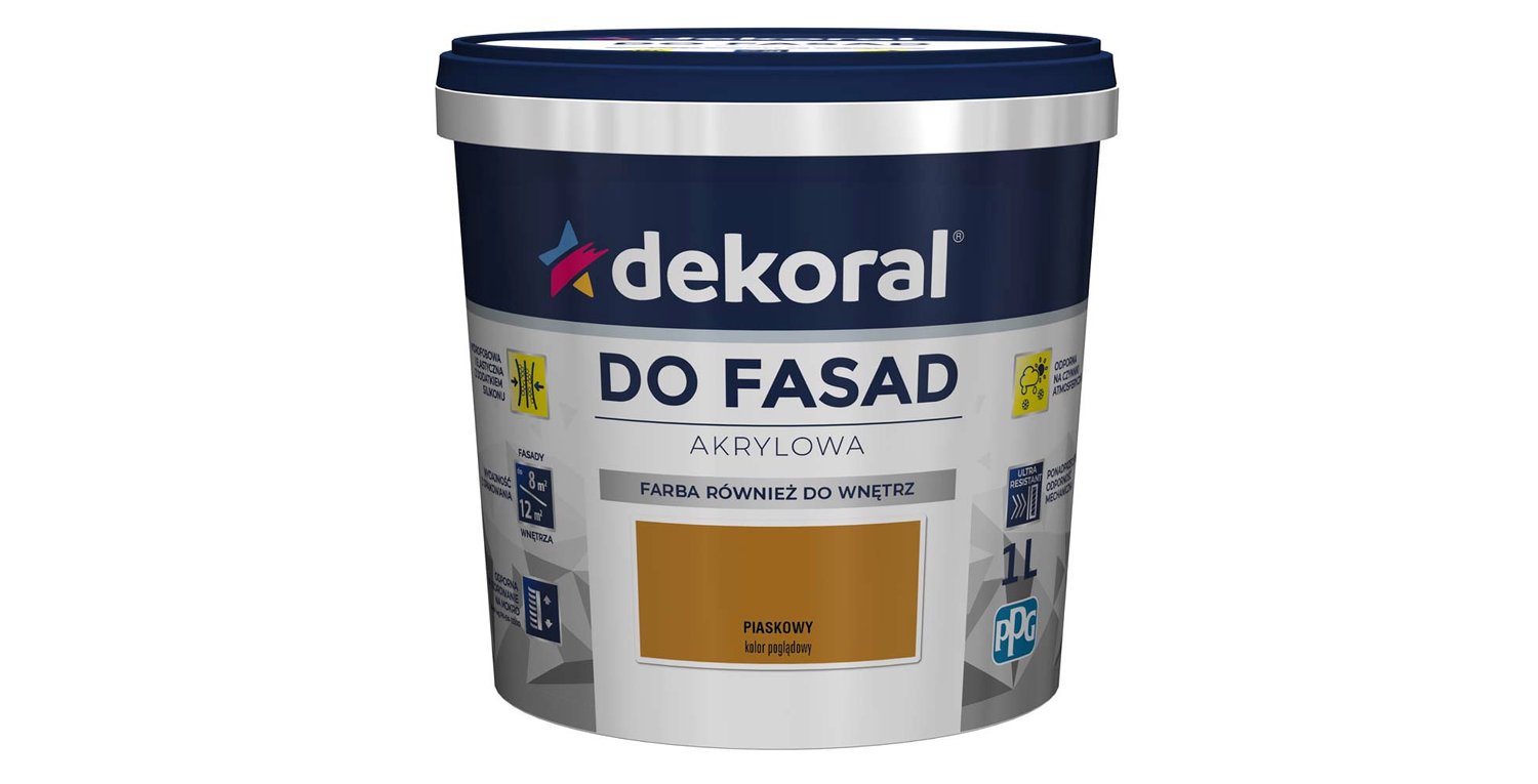 Polinit DEKORAL to wydajna farba fasadowa w odcieniu piaskowym. Farbę akrylową z tej serii można z powodzeniem stosować zarówno do malowania elewacji, jak i wewnątrz pomieszczeń. Preparat dobrze radzi sobie z pokrywaniem powierzchni ceglanych, betonowych, tynków i elementów gipsowo-kartonowych. Polinit łączy w sobie działanie dekoracyjne i ochronne. Farba ma właściwości hydrofobowe – jest odporna na szorowanie i działanie warunków atmosferycznych. Pomalowana powierzchnia nie zmienia barwy pod wpływem silnego nasłonecznienia. Szacowana wydajność preparatu to ok. 8 m²/l dla fasad i ok. 12m²/l dla ścian wewnętrznych. W celu uzyskania optymalnego efektu zalecane jest nałożenie 2 warstw farby.