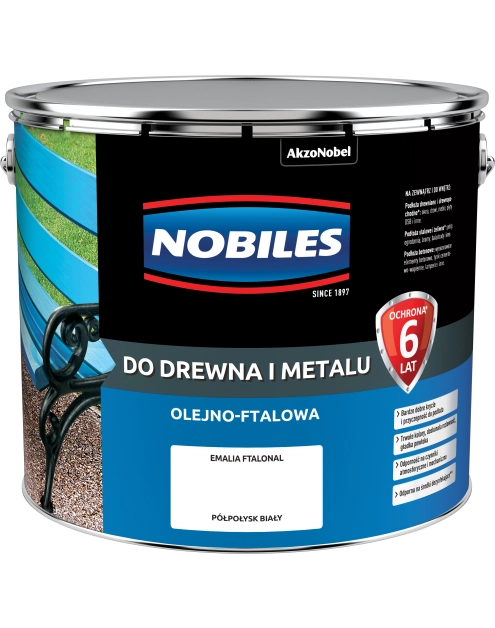 Nobiles Do Drewna i Metalu Ftalonal to nawierzchniowa farba alkidowa, dająca powłoki charakteryzujące się dobrą przyczepnością do podłoża, elastycznością oraz dobrą odpornością na czynniki atmosferyczne. Nobiles Ftalonal to farba do ochronnego i dekoracyjnego malowania powierzchni: stalowych, żeliwnych, drew-nianych, betonowych oraz tynków cementowo – wapiennych pokrytych uprzednio farbami podkładowymi lub antykorozyjnymi. Służy do malowania np. elementów metalowych balkonów, malowania elementów drewnianych altan czy lamperii na tynkach cementowo – wapiennych. Może być stosowana we-wnątrz i na zewnątrz obiektów. - gwarancja 6 lat ochrony - bardzo dobre krycie - trwałość kolorów - wyjątkowa odporność na czynniki atmosferyczne