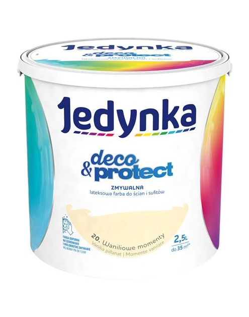 Lateksowe farby do ścian i sufitów są bardzo proste i wygodne w aplikacji. Możesz nakładać ja na ściany pędzlem, wałkiem lub natryskiem. Doskonale kryją i charakteryzują się znakomitą przyczepnością do podłoża. Nie posiadają nieprzyjemnego, drażniącego zapachu. Są odporne na działanie promieni słonecznych, zmywanie i wielokrotne szorowanie. W ofercie marki Jedynka znajduje się farba lateksowa w kolorze waniliowych momentów, którą możesz wykorzystać wewnątrz budynku do pomalowania większości pomieszczeń w domu.