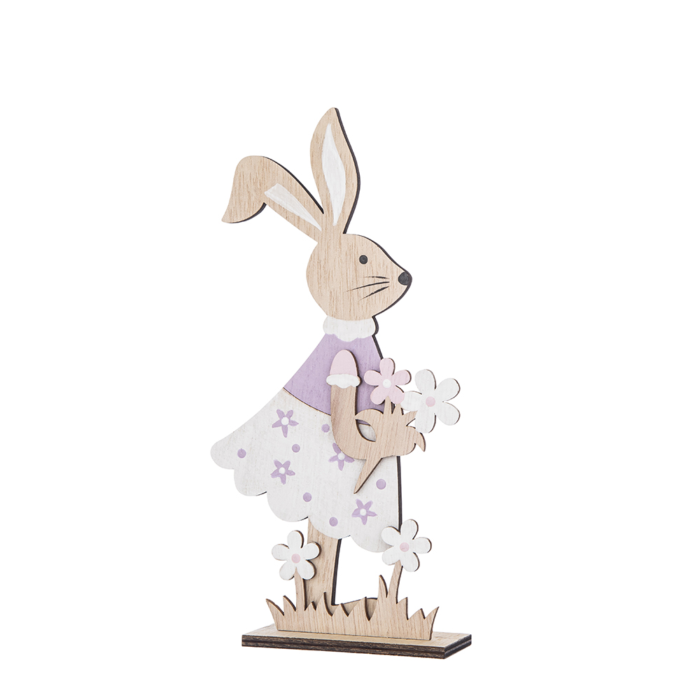 Figurka drewniana zając z kwiatami 10x4x20,5 cm ALTOMDESIGN