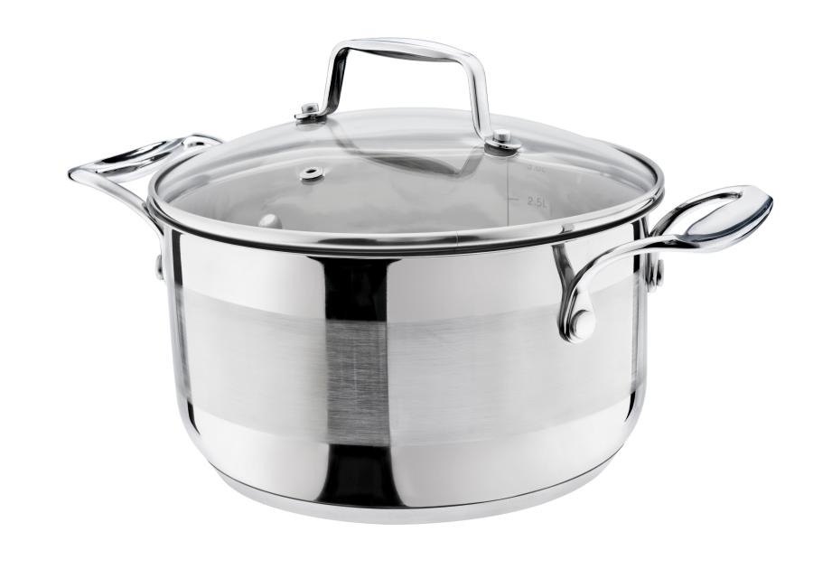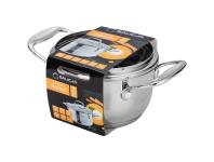 Wysokiej jakości garnek Primo wykonany jest ze stali nierdzewnej. Przezroczysta pokrywa szklana umożliwia podgląd zawartości podczas gotowania. Jest dokładnie dopasowana i przylegająca do naczynia, co pozwala na zoptymalizowanie czasu gotowania. Na ściance garnka znajduje się praktyczna miarka. Dno kapslowe akumulujące ciepło gwarantuje równomierne jego rozprowadzanie, co umożliwia gotowanie z małą ilością wody, pozwalając w ten sposób zachować cenne witaminy w gotowanych potrawach. Można używać go na wszystkich kuchenkach, również na kuchenkach indukcyjnych. Nadaje się do mycia w zmywarce.