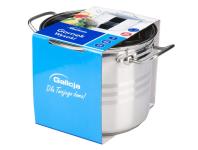 Wysokiej jakości garnek Wysoki wykonany jest ze stali nierdzewnej. Przezroczysta pokrywa żaroodporna umożliwia podgląd zawartości podczas gotowania. Dokładnie dopasowana i przylegająca do naczynia, umożliwia zoptymalizowanie czasu gotowania. Na wewnętrznej ściance garnka znajduje się praktyczna miarka. Nadaje się do wszystkich typów kuchenek: gazowe, elektryczne, ceramiczne, indukcyjne. Wymiary: średnica: 28cm Wysokość: 23cm Waga: 2,5kg