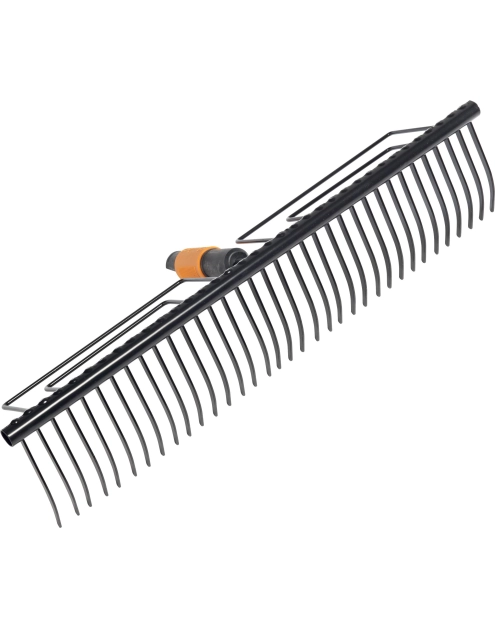 Fiskars QuikFit to gama narzędzi, mocowanych na aluminiowym trzonku, pozwalających wykonywać szereg prac ogrodniczych bez użycia drabiny . Głowica pasuje do trzonków Fiskars z serii QuikFit. Szybka i wydajna praca dzięki szerokości części roboczej wynoszącej 57 cm, optymalny rozstaw zębów co 1.5 cm eliminuje ryzyko wyślizgiwania się materiału, mocne, sprężynujące zęby, odporne na złamanie i pękanie w trakcie pracy