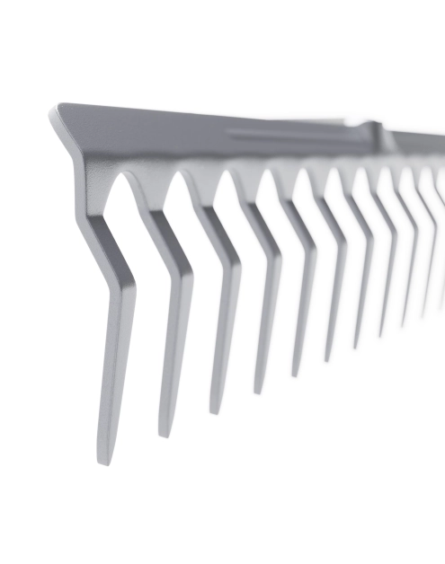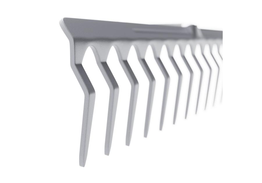 Większa 16 zębna wersja grabi 10 i 12 zębnych. Narzędzie ręczne, stosowane w rolnictwie i ogrodnictwie. Niezastąpione przy pielęgnacji trawnika,spulchnianiu ziemi, wyrównywaniu gleby, zbieraniu liści i resztek roślinnych z trawnika, jak również do rozprowadzania materiałów sypkich i wyrównania terenu. Charakteryzują się solidną budową, są odporne na deformacje i złamania podczas prac, posiadają część roboczą wykonaną z wysokiej jakości stali, powierzchnia grabi pokryta farbą proszkową. Nasadka trzonka jest przyspawana i przystosowana do montażu trzonu o średnicy 28mm.
