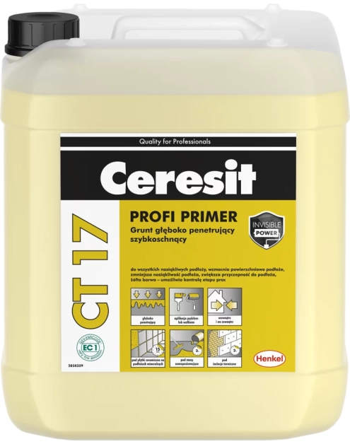 Grunt bez rozpuszczalnika bezbarwny 5l CT17 Ceresit to skuteczny preparat, który ma zastosowanie w wzmacnianiu powierzchni podłoży nasiąkliwych, takich jak ściany, podłogi i sufity, zarówno wewnątrz, jak i na zewnątrz budynków. Działa poprzez wzmacnianie powierzchniowo podłoża, zmniejszając jego nasiąkliwość, co skutkuje lepszą przyczepnością materiałów budowlanych.