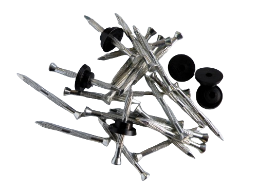 Gwoździe z podkładkami do montażu folii kubełkowej 100 szt. marki PLAST-MASTER to rodzaj akcesoriów stosowanych do dociepleń budynków. Stanowią system montażowy dla folii fundamentowej i izolacyjnej do powierzchni betonowej i ceglanej. Wykonane z wysokiej jakości metalu są trwałe i odporne na uszkodzenia mechaniczne. Szeroka podkładka zapewnia stabilność i chroni przed rozrywaniem się folii. W przypadku montażu do twardych powierzchni może być wymagane wykonanie otworów niewiele mniejszych o średnicy gwoździ. Przy miękkich powierzchniach nie ma takiej potrzeby.