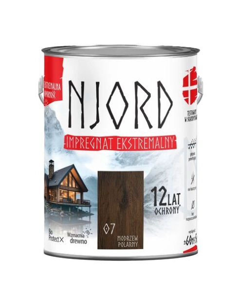 Impregnat ekstremalny 5l modrzew polarny Njord to wysokiej jakości preparat ochronny, który zapewnia wyjątkową ochronę przed niekorzystnymi warunkami atmosferycznymi, takimi jak wilgoć, deszcz, śnieg oraz promieniowanie UV. Produkt jest dedykowany do drewnianych powierzchni zewnętrznych, takich jak meble ogrodowe, tarasy, elewacje czy pergole.