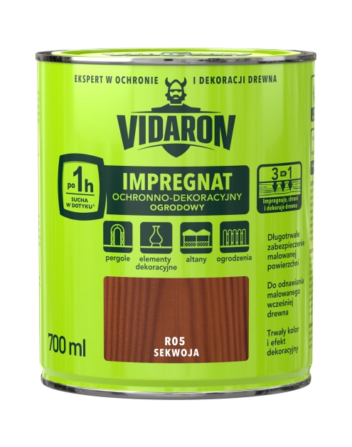Ochrona drewna przy użyciu wysokiej jakości preparatów to podstawa. Pozwala na zachowanie atrakcyjnego wyglądu przez bardzo długi czas. Impregnaty do drewna chronią m.in. meble ogrodowe wykonane z drewna przed niekorzystnymi, zmiennymi warunkami atmosferycznymi oraz promieniowaniem UV. W ofercie marki Vidaron znajduje się impregnat ochronno-dekoracyjny w kolorze sekwoi, który nakłada się za pomocą pędzla lub wałką na drewnianą powierzchnię. Długotrwale zabezpiecza m.in. pergole, elementy dekoracyjne, altany czy ogrodzenia. Uzyskasz z jego pomocą efekt dekoracyjny. Kolor jest bardzo trwały.