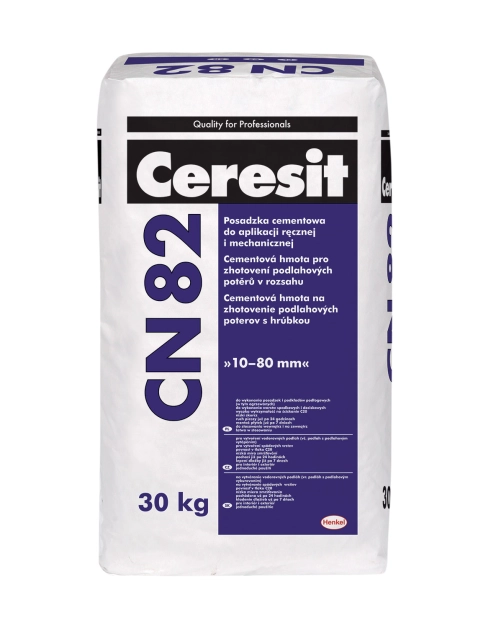 Ceresit CN 82 może być stosowana do wykonywania posadzek w garażach indywidualnych, pomieszczeniach gospodarczych, piwnicach, w mieszkaniach, w obiektach użyteczności publicznej takich jak: szkoły, przedszkola, biura, szpitale, itp. Zaprawą można dokonywać napraw posadzek i elementów betonowych. Ceresit CN 82 jest wodo- i mrozoodporna. Może być stosowana do wykonywania warstw spadkowych i dociskowych na balkonach i tarasach.