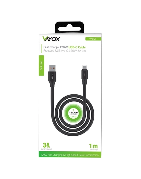 Kabel USB - USB-C 120W 3A 1 m fast line czarny VA0121 VAYOX