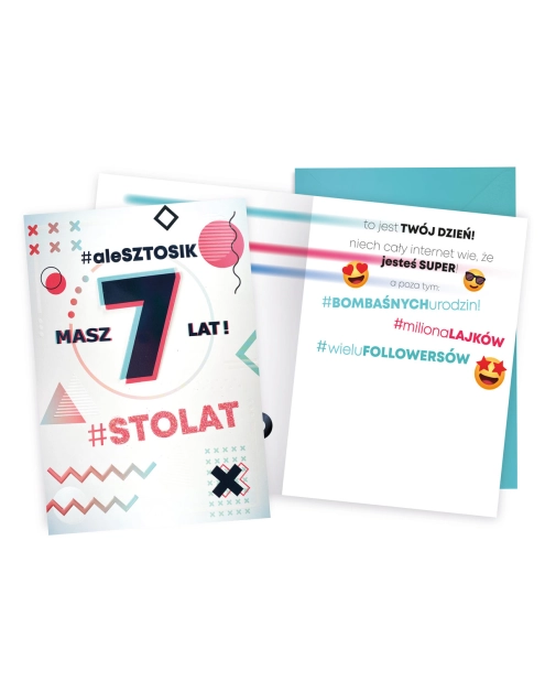 Karnet DKP-044 Urodziny 7 - cyferki, emotki KUKARTKA