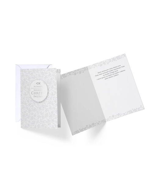 Karnet Vision (V) - w powiększonym tzw. angielskim formacie 14x19 cm. Wykonana na papierze kraft z niezwykłą dbałością o szczegóły, zdobiona metalizowaną folią. Wewnątrz znajduje się tekst życzeń, a całość uzupełnia dopasowana kolorystycznie koperta.